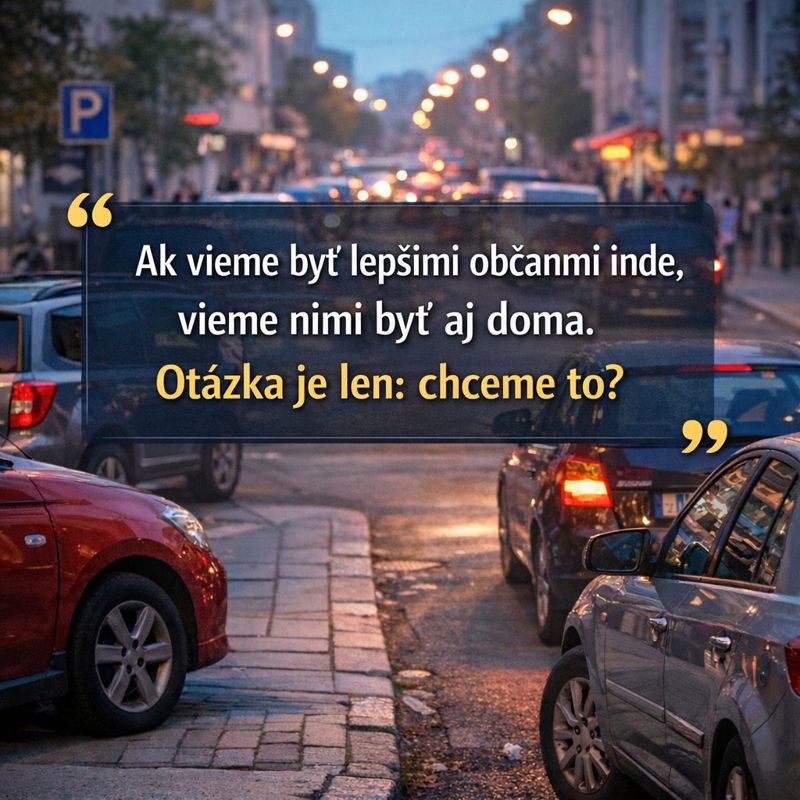 Každé auto zároveň potrebuje počas dňa viacero parkovacích miest — pri dome, pri obchode, v centre mesta. Preto samotné pridávanie parkovacích miest nikdy problém úplne nevyrieši.